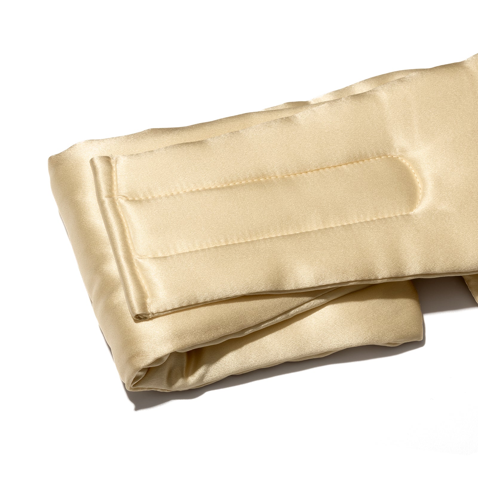 Naše hedvábná maska spojuje krásu s funkčností. 100% zatemnění pro hlubší odpočinek, chrání pokožku a každý večer přináší pocit klidu.